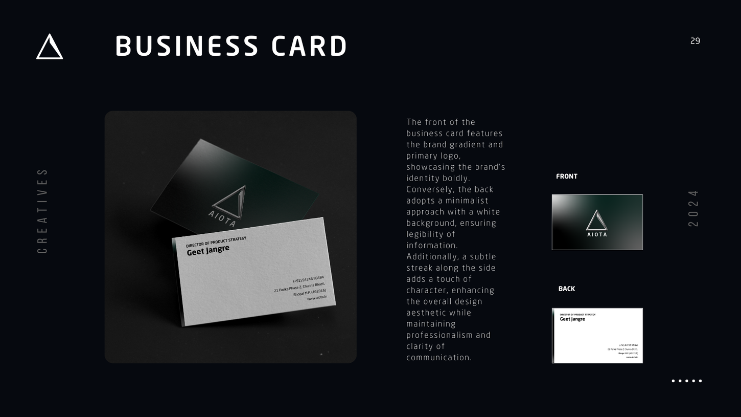Reflect AIOTA’s modern, technology-driven vision with metallic and clean aesthetics.